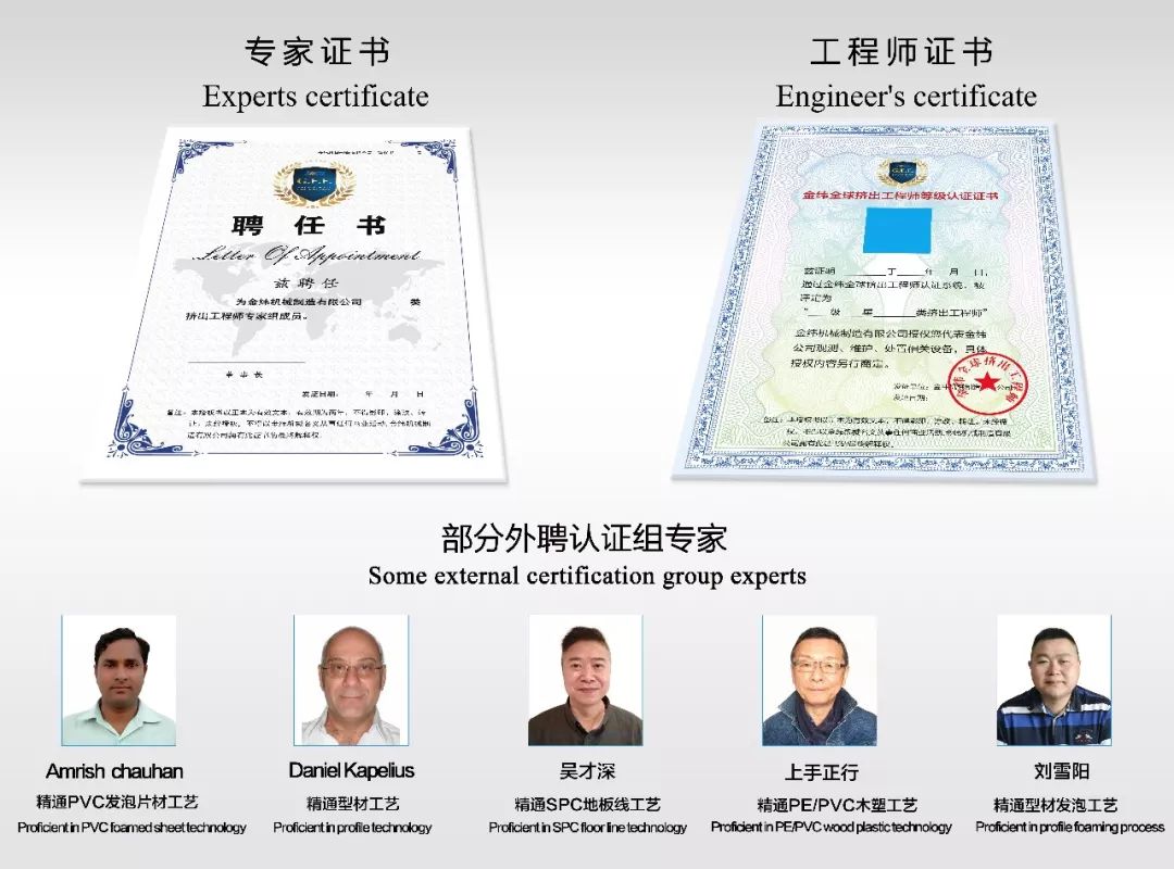 Jwell global extrusion engineer certificating system aims to help outstanding engineers in the global extrusion industry to evaluate and certify their own abilities through Jwell platform,and to provide learning opportunities and training plan according to individual demands, and to promote the development and progress of extrusion industry.